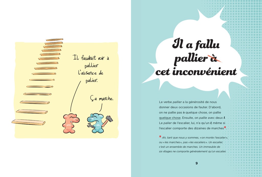 Les illustrations de Jean-Christophe Establet, aussi didactiques que rigolotes, vous aideront à comprendre et à mémoriser chausse-trapes et astuces… tandis que leur humour décapant vous regonflera le moral, s’il lui arrivait quelquefois de flancher devant les délicieuses loufoqueries de l’orthographe du français.
